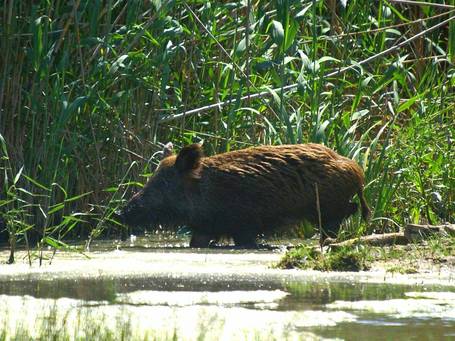 Following the boarish rampage the pig decided to swim out into the middle of a river before collapsing drunk under a tree and falling asleep.